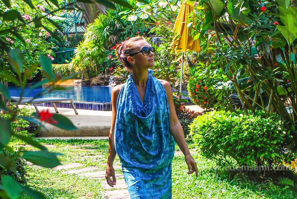 Парео при ходьбе не раскрывается и не съезжает, и даже несмотря на довольно открытую спину, ничего лишнего на всеобщее обозрение не выставится.