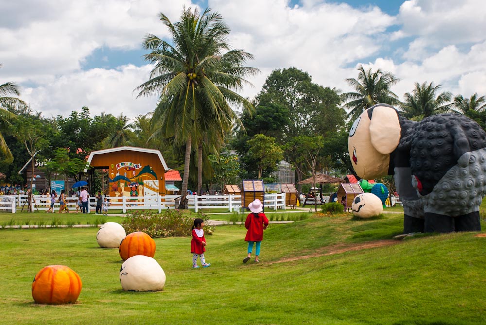 Овечьей фермой мы обязаны ребятам из Chang. Ферма всем хороша: и просторно, и ухоженно, и овечек покормить (20 батов), и на лошадке покататься (150), и в птичнике на уток-гусей поглазеть. Есть батут, карусель-паровозик (по 40 батов), бесплатные качели, ларьки с прохладительными напитками и сувенирами, кофейня и ресторан, он же стейк-хаус. Есть еще машинки и велики для детей напрокат (50-80 батов) и куча мимимишных глупых инсталляций для Инстафото. К каждому празднику на ферме делают тематические украшения. Не знаю, о чем еще мечтать.