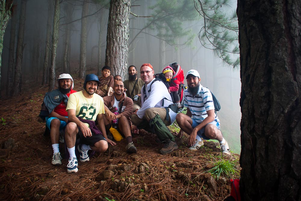По совету столичных жителей, мы решили не возвращаться обратно той же дорогой, а полезли вверх, на самую макушку, чтобы оттуда выбраться на дорогу и уже по ней спокойно спуститься вниз к Сэре. Лезть оказалось не так далеко, но обманчивый склон и облако делали эту задачу довольно непростой: каждый раз, когда казалось, что вот уже и вершина, вверху вырастали очередные деревья.
